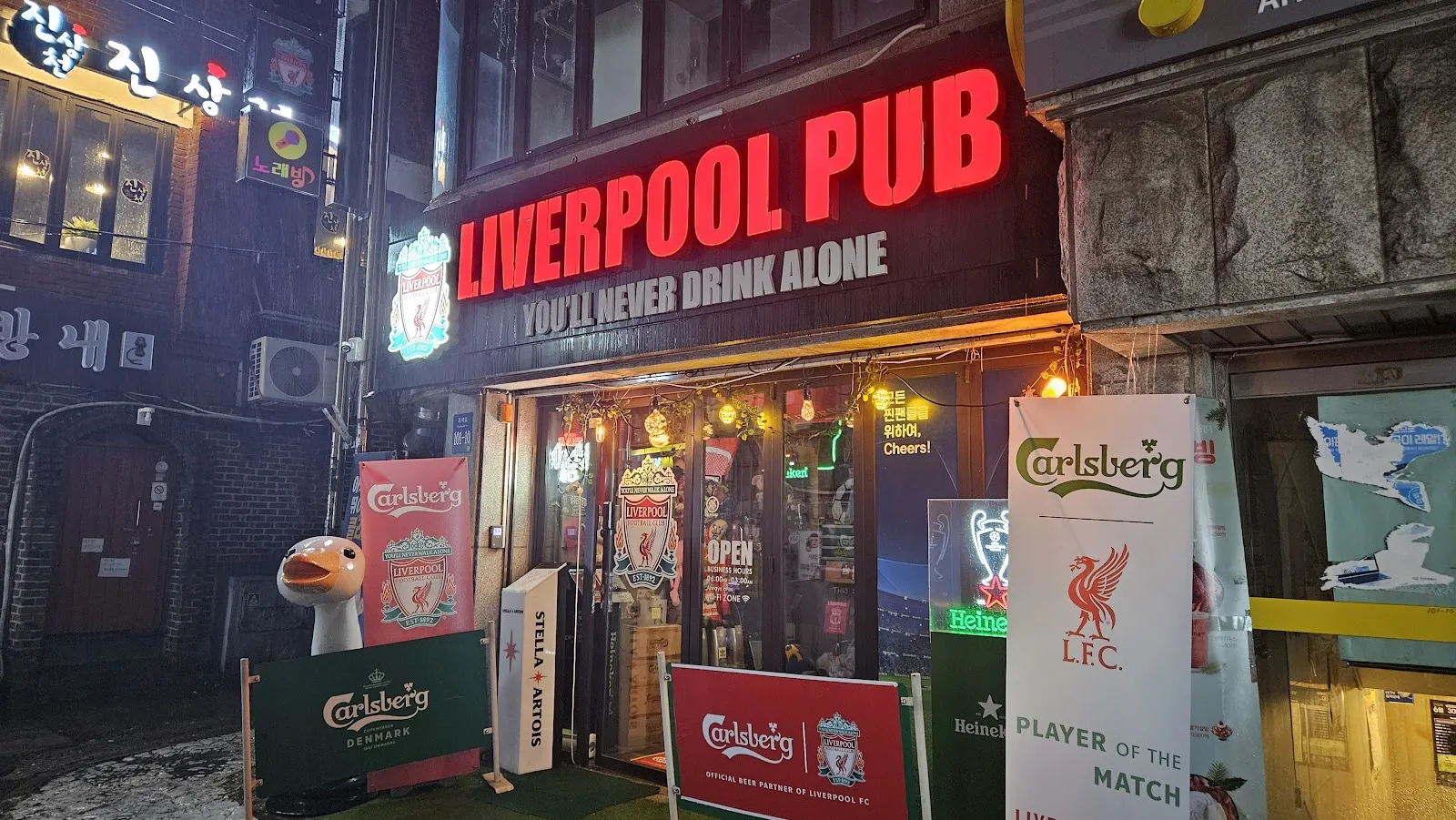 Experience the vibrant energy of Liverpool Pub in the heart of Geumseok, Seoul! With an eclectic mix of entertainment and delightful drinks, it’s the perfect spot to unwind and socialize with friends.